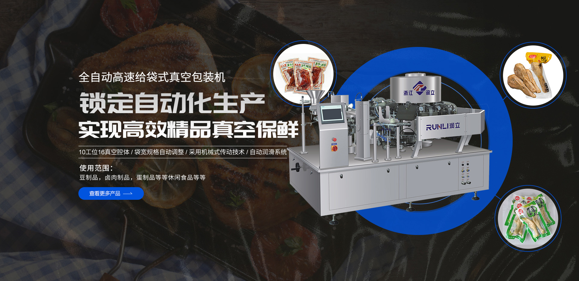 潤立人十年來對給袋式(真空)包裝機(jī)發(fā)展步伐迅速而穩(wěn)健,致力于國外先進(jìn)技術(shù)的引進(jìn)和積累,一直以來潤立人以高科技、高標(biāo)準(zhǔn)、好品質(zhì)為目標(biāo),不斷學(xué)習(xí)先進(jìn)、不斷創(chuàng)新、研發(fā)制造性能好、技術(shù)好、易操作、易維護(hù),功能齊全、穩(wěn)定性強(qiáng)、集自動化為一體的給袋式全自動充填包裝機(jī)系列......
